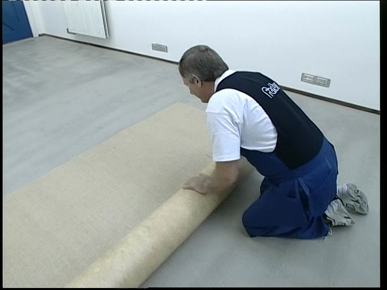 3、 材料切割以后,将材料反卷一次,反卷时间至少半小时,然后将材料正面向外,宽松的卷起,竖立放置在施工现场24小时,24小时以后,铺设地板。